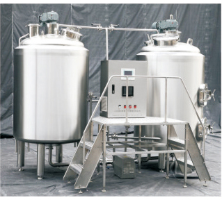 精釀啤酒實(shí)驗(yàn)設(shè)備包括機(jī)架和安裝在機(jī)架上的冰水罐、糖化罐、發(fā)酵罐和冷卻系統(tǒng);產(chǎn)品的冰水罐有冰水內(nèi)罐和冰水外罐,冰水內(nèi)罐和冰水外罐之間安裝有水處理裝置;產(chǎn)品的冰水內(nèi)罐和糖化罐之間、糖化罐和發(fā)酵罐以管道相連,管道上安裝有閥門、流量計(jì)和麥汁泵;產(chǎn)品的糖化罐和發(fā)酵罐中安裝有攪拌機(jī)、加熱機(jī)構(gòu)、溫度傳感器和冷卻機(jī)構(gòu),產(chǎn)品的發(fā)酵罐上還有觀察窗、出酒口、壓力表、壓力調(diào)節(jié)表和試酒口;產(chǎn)品的冷卻系統(tǒng)包括制冷機(jī)組、冰水泵、三通閥門、流量計(jì)、水壓表、安裝于糖化罐和發(fā)酵罐中的降溫盤管。精釀啤酒實(shí)驗(yàn)設(shè)備適用于各種精釀啤酒配方的實(shí)驗(yàn)和開發(fā),成本小,功能齊全。