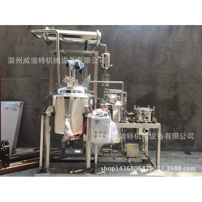 將藥材投入提取罐內(nèi),加入5—10倍的溶劑如水、乙醇、甲醇、丙酮等(根據(jù)工藝要求)。開啟提取罐加熱系統(tǒng),使提取液加熱至沸騰2030分鐘后,用抽濾管將三分之一的提取液抽入濃縮罐。