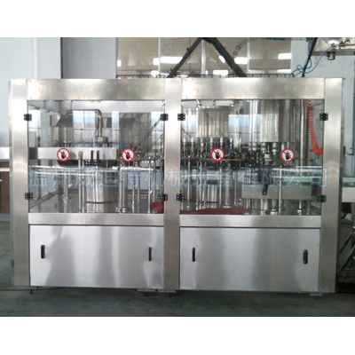 5L三合一礦泉水灌裝機:沖洗、滴干、灌裝和壓蓋一體主機組成,適用于3-5加侖桶裝飲用水的灌裝生產。沖洗過程分三道工序:堿性液態除污劑內、外沖洗。堿性水、消毒水可循環使用。整個沖洗灌裝封蓋過程采用了PC電腦控制,本設備有連鎖、信號、自測等安全裝置。