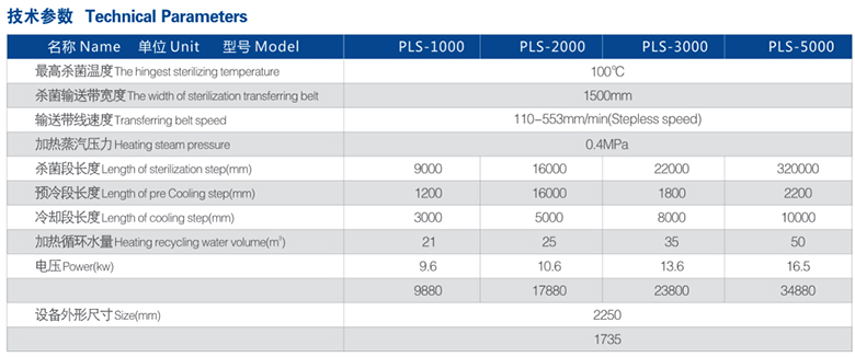 It adopts warm water to preheat, sterilize with recycling hot water, recycling warm water to pre-cool, and cooling water to cool; it is with the advantages of sterilizing temperature automatic control, and adjustable sterilizing time;and can be widely used in sterilizing and cooling of juice and beverage in various bottles and cans, electrolyte beverage, wine and condiments.